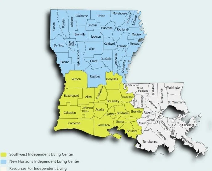 The Centers for Independent Living (CILs) are consumer-controlled, community-based, cross-disability, nonresidential, private nonprofit agencies that provide IL services. The three Centers in Louisiana provide the following IL core services: